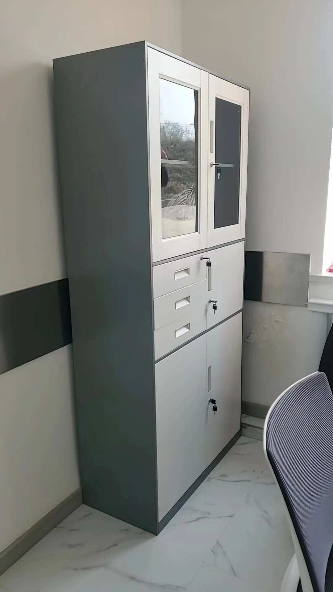 Steel Version Glass Filing Cabinet Low Cabinet Side Drawer Chest