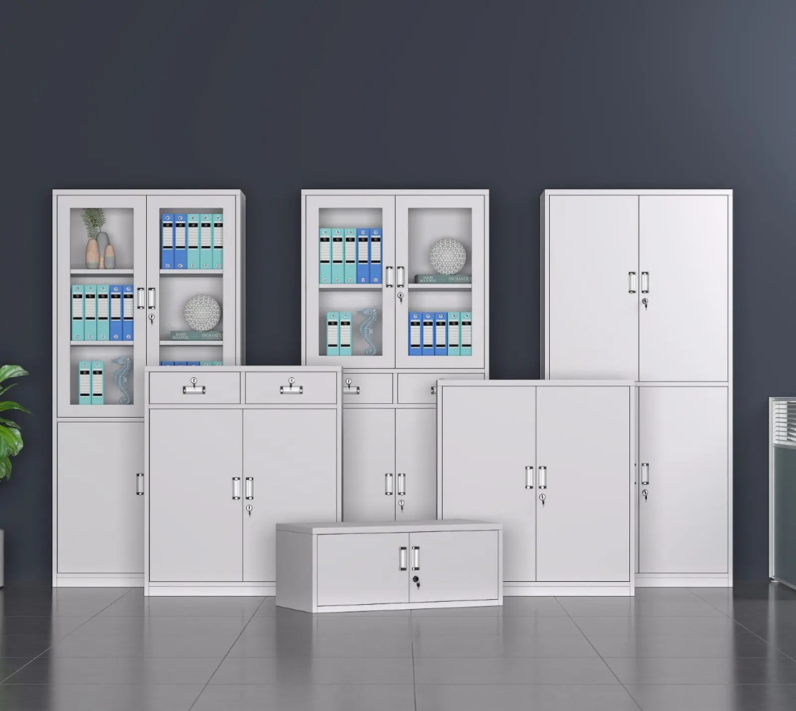 Steel office file cabinet series, bookshelves, compact shelves.